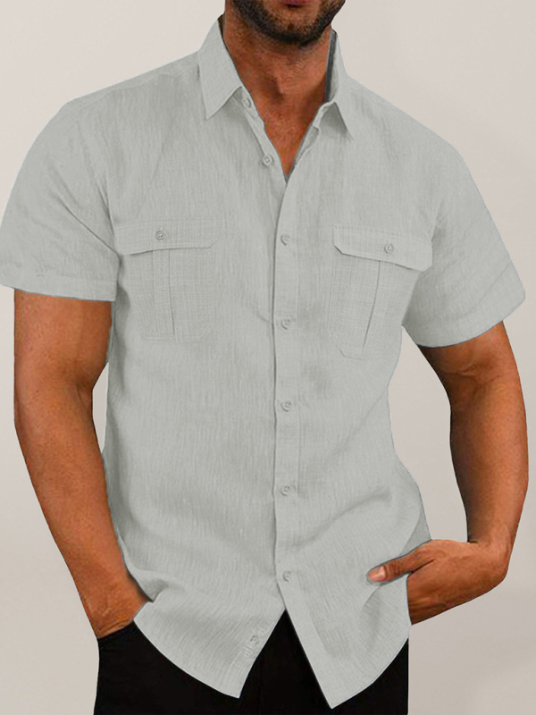 New Men’s Shirt Double Pocket Cotton Linen Short Sleeve Shirt Casual Resort Shirt is suitable for many occasions, the simple design makes the boring season colorful and interesting. A variety of collocation options make you confident and handsome. It fits snugly without restricting your movement.